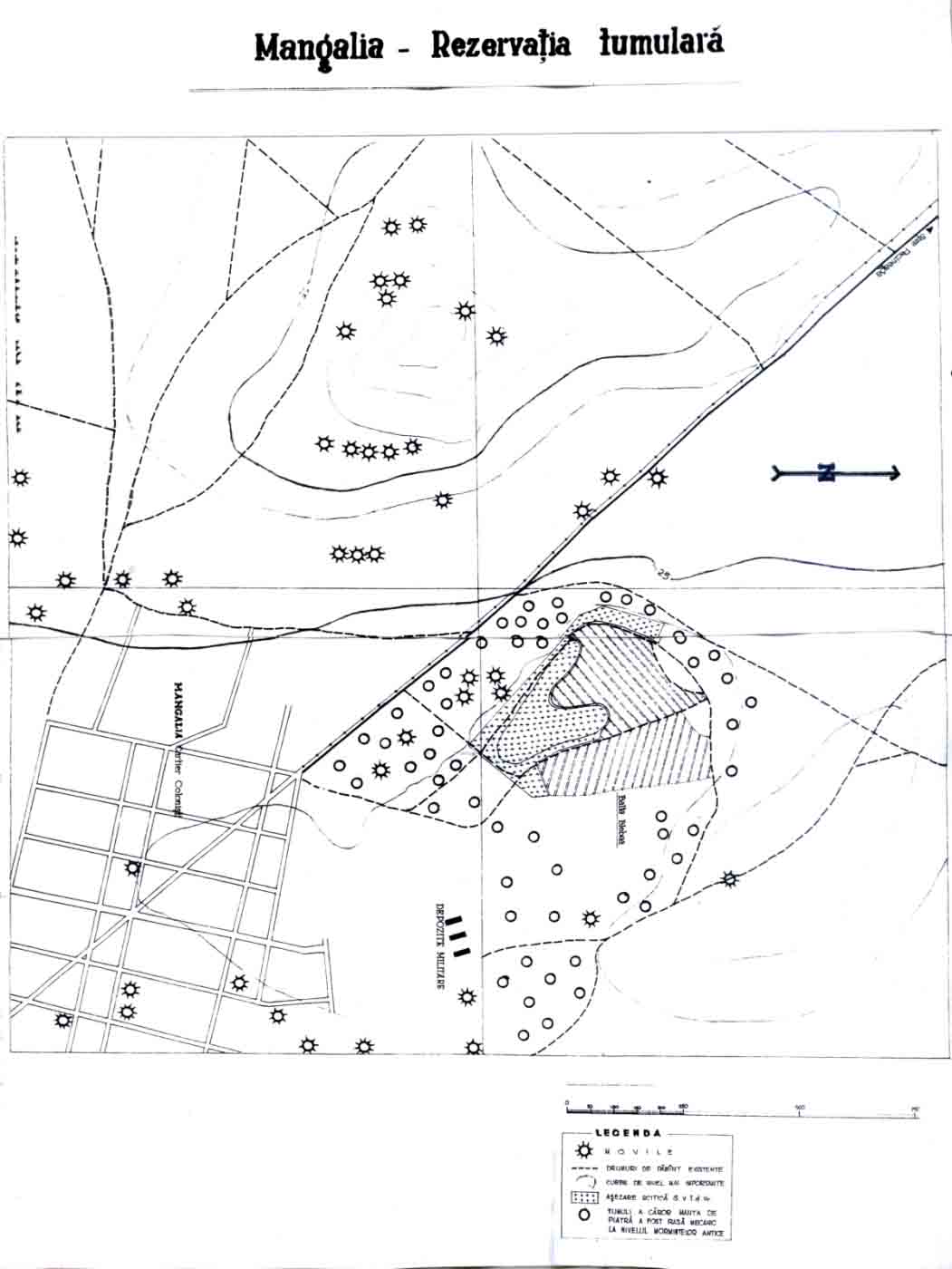 Landmark   Necropola tumulară se întinde pe întreg perimetrul teritoriului administrativ Mangalia. Mai multe movile tumulare au fost identificate între cartierul Colonişti şi Topitoria de in, în marginea oraşului, şi satul Blebea.