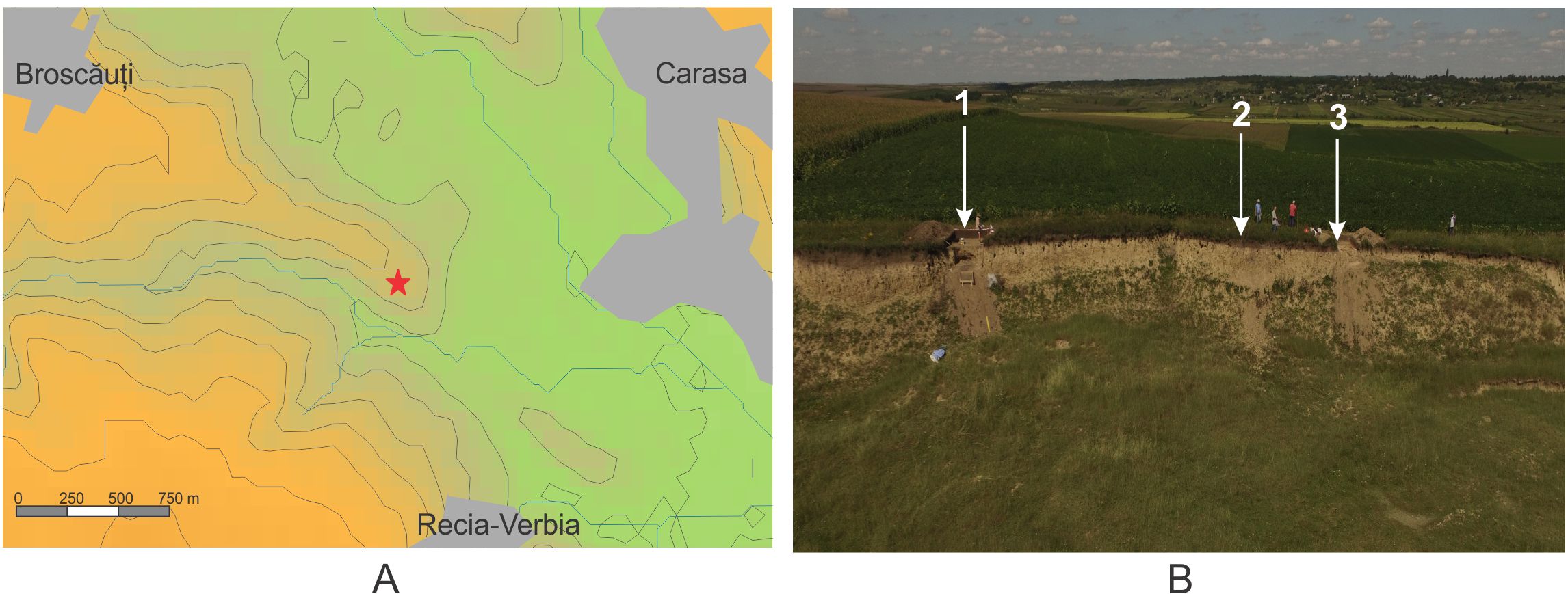 Situl se află la sud-est de satul Broscăuţi, pe un platou la altitudinea de 145 m. Pe latura sudică, înspre Valea Iepăriei, versantul este puternic afectat de eroziune, iar în nord şi est coboară în pantă lină spre valea Jijiei. Locul este cunoscut de localnici sub denumirea de Hârtop. |