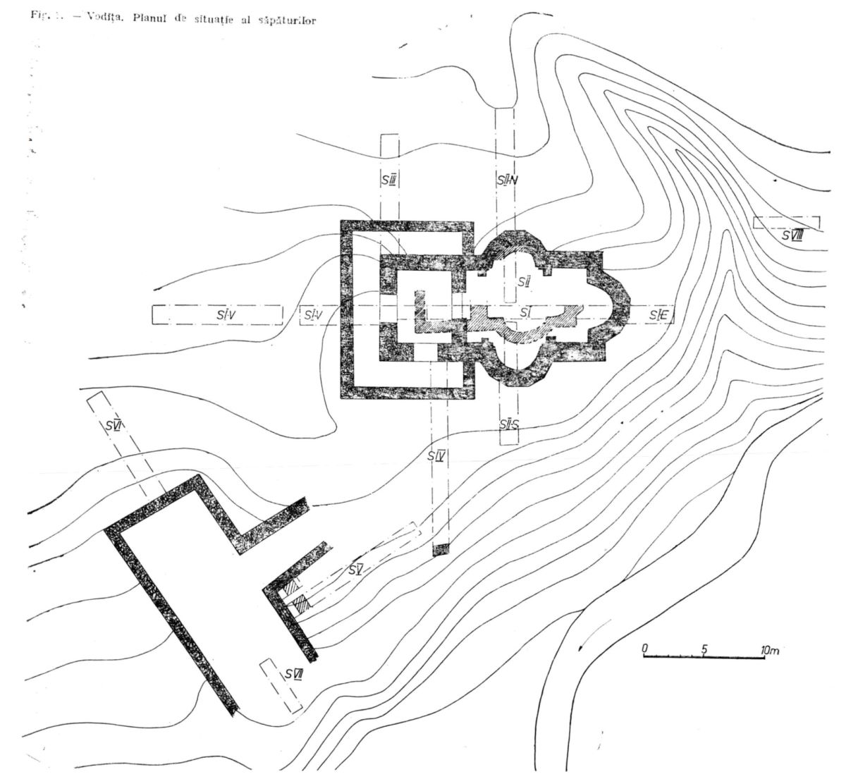 Mănăstirea Vodița: planul săpăturilor din 1970 |