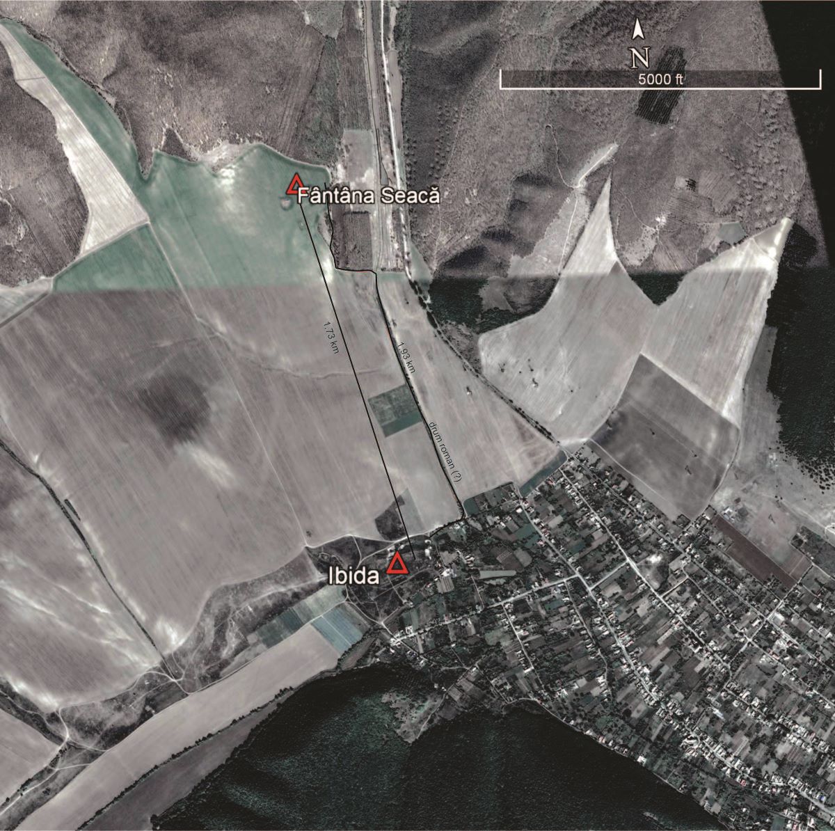 În cadrul acestei imagini satelitare este vizibilă amplasarea așezării rurale de la Slava Rusă-Fântâna Seaca |