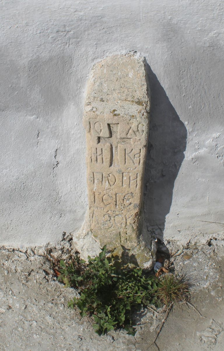 Stâlp funerar fixat în zidul exterior la altarul Bisericii din Joseni. |