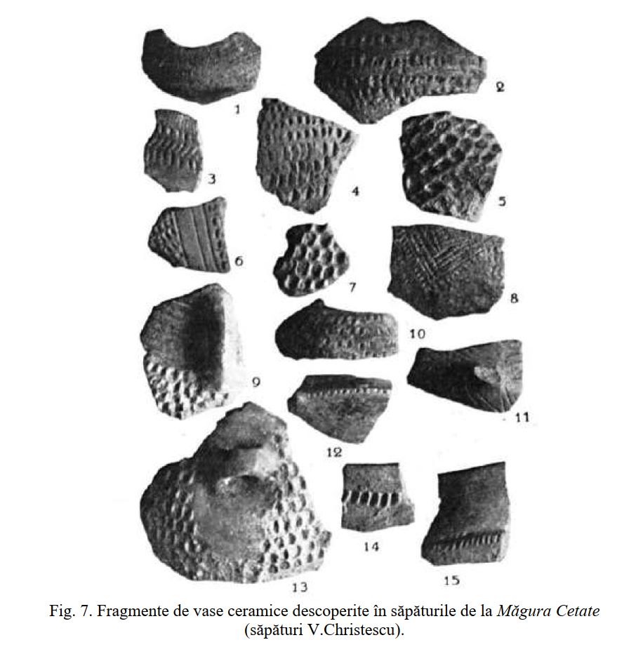 Ceramică Vădastra descoperită de V. Christescu pe Măgura Cetate |