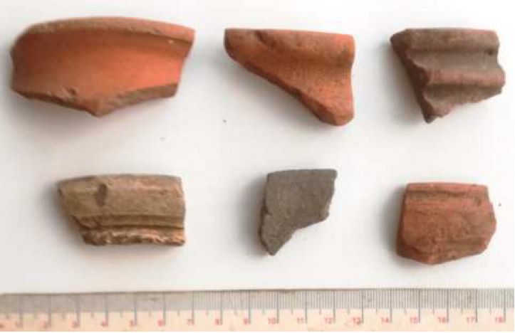 Fragmente din oale romane descoperite la Malu Roșu - Vădastra. |