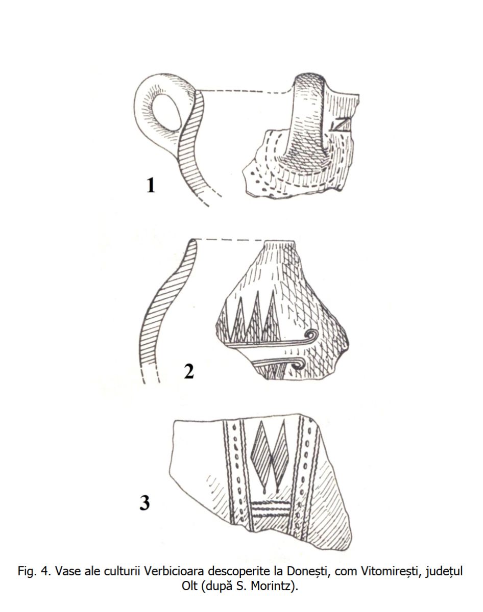 Fragmente ceramice Verbicioara descoperite în urma sondajului din anul 1972. |