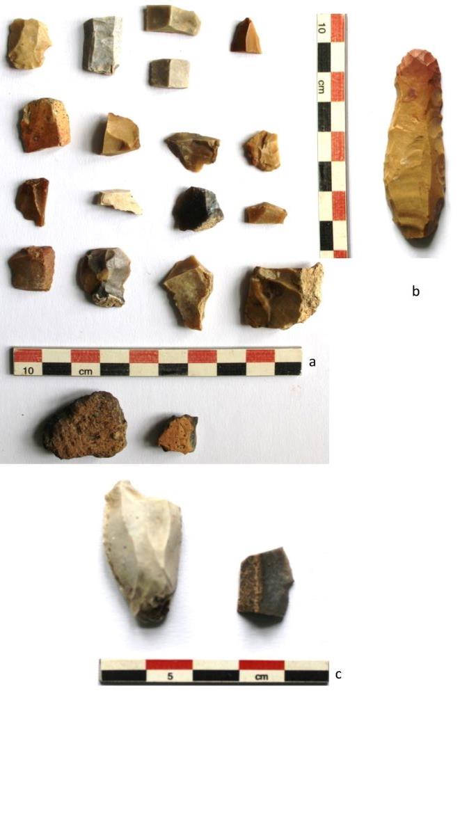 Materiale arheologice descoperite în diverse zone ale sitului Sit în 3 comune (a-b) și materiale marcate |