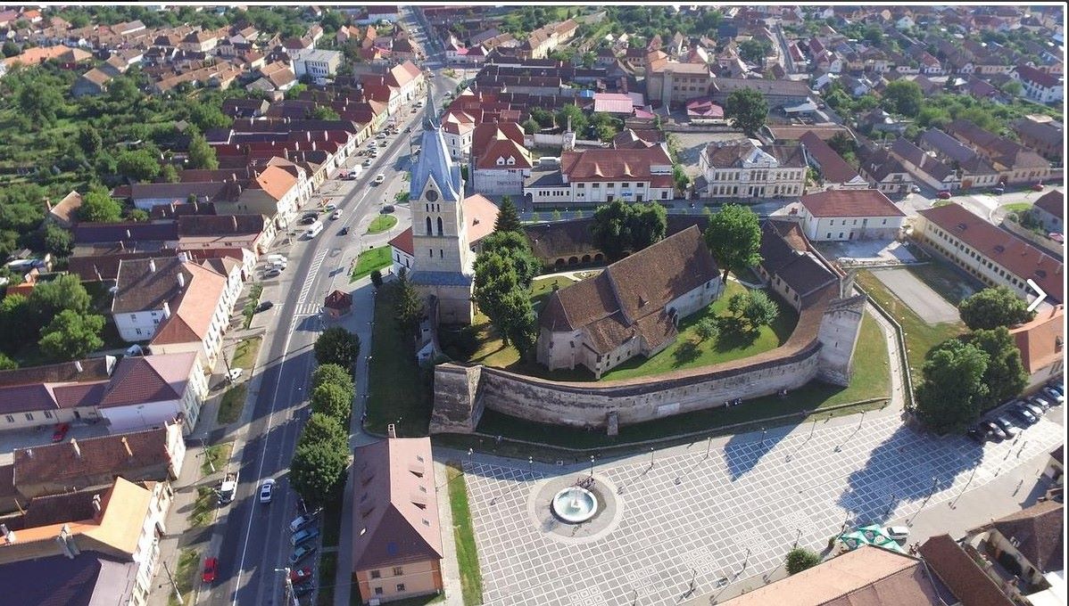 Biserica fortificată se află în centrul localităţii. |