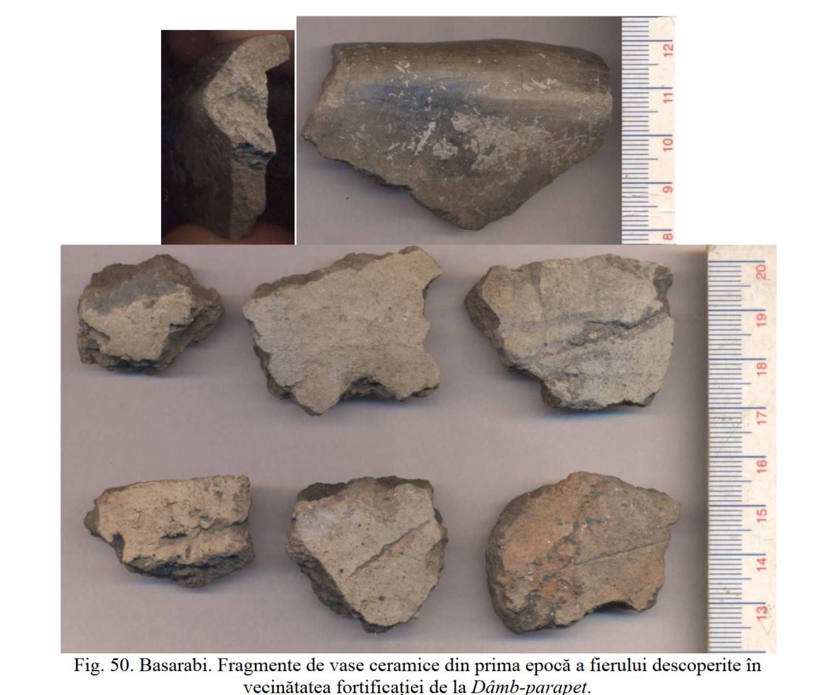 Fragmente ceramice datând din prime epocă a fierului descoperite în proximitatea fortificației. |