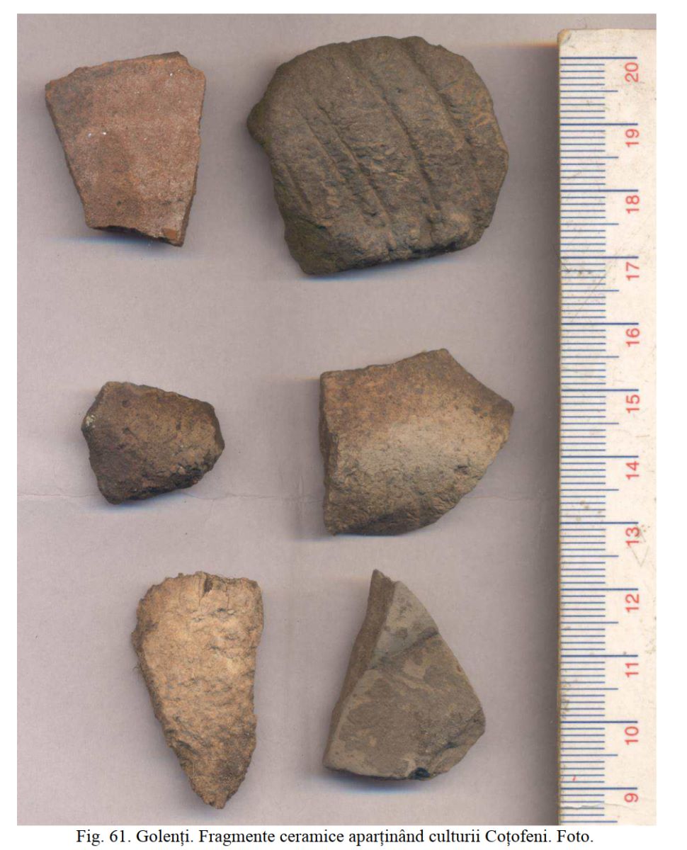 Cermică preistorică descoperită în perimetrul sitului de la Golenți - Șosea (sau Oaga Mare) |
