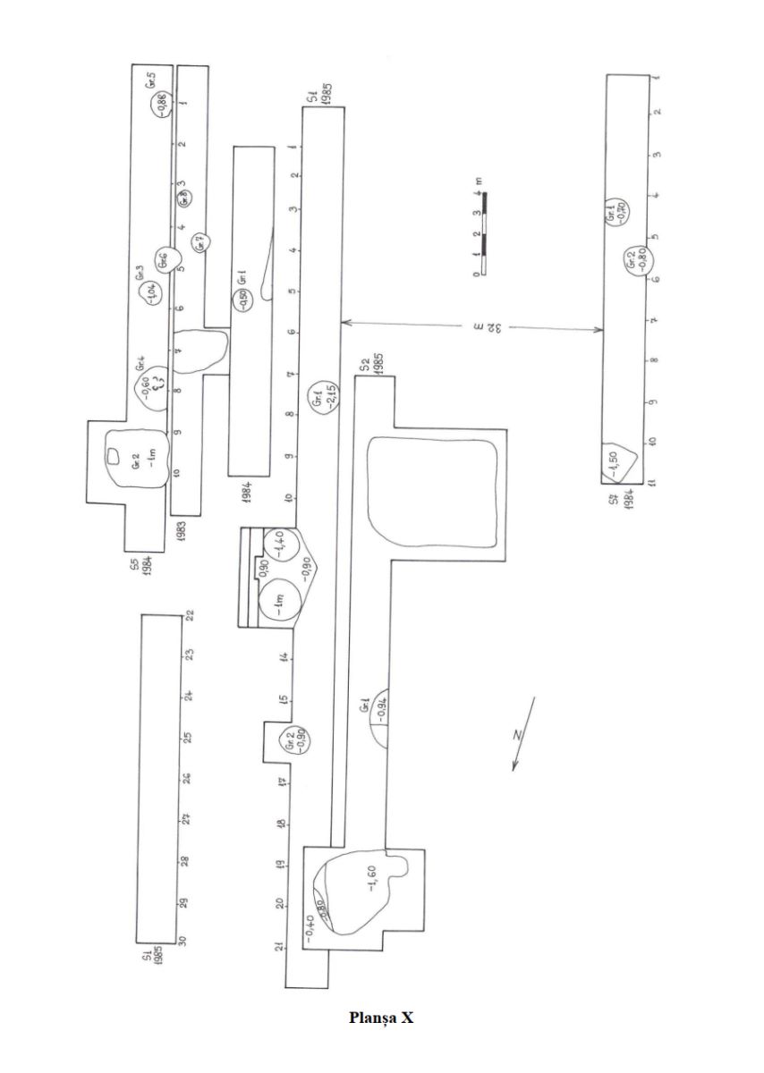 Descriere   Planul săpăturilor arheologice din anul 1985.